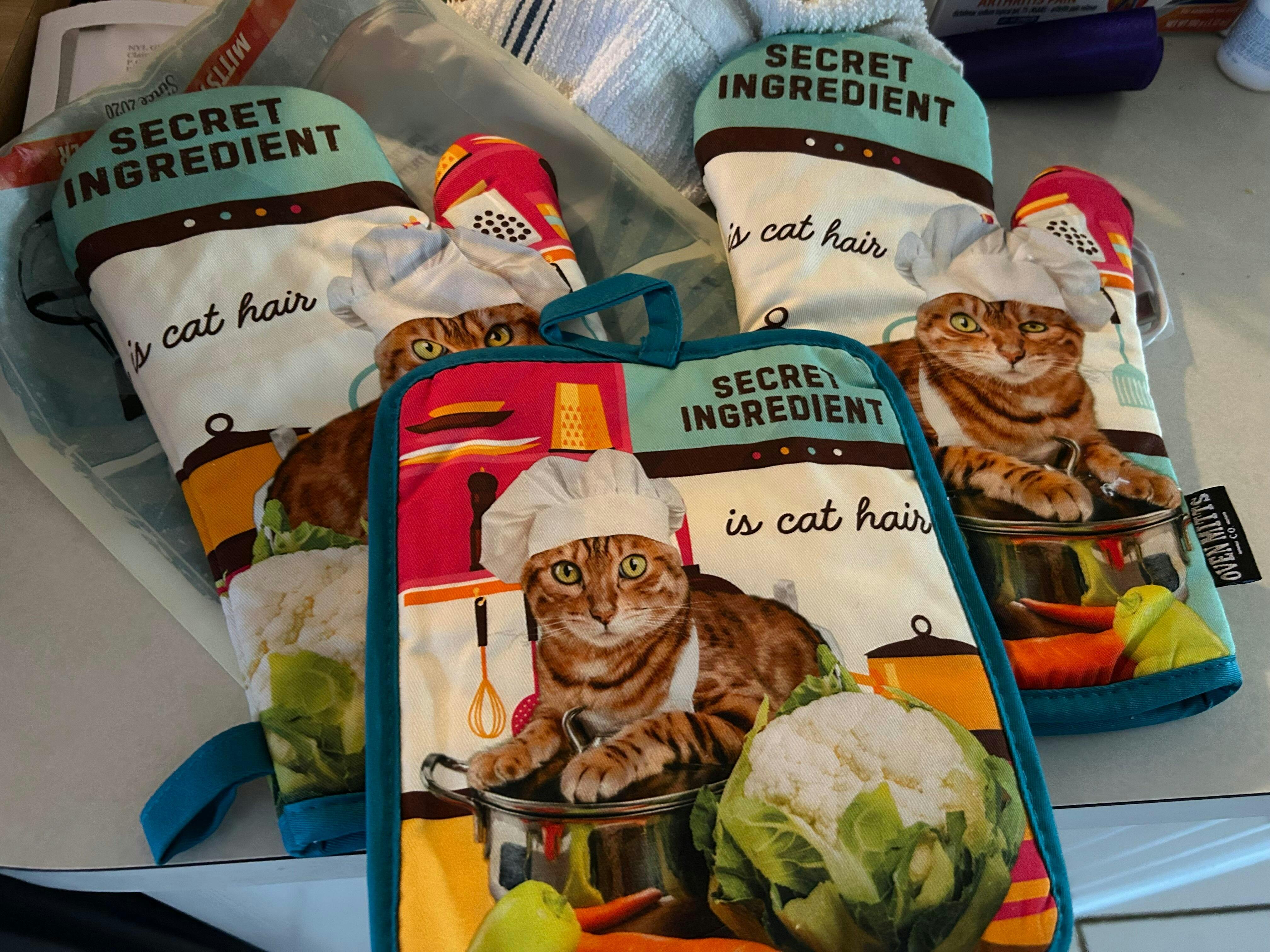 Secret Ingredient Is Cat Hair Oven Mitts And Potholder Set